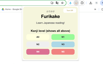 Furikake 是一个免费的 Chrome 扩展,旨在通过直接在网页上添加 Furigana(音读辅助)来帮助用户阅读汉字。这个工具对于学习日语的人特别有用,因为它允许他们专注于特定的 JLPT 级别,从 N5 到 N1。该扩展通过使理解复杂的汉字变得更容易而不打断阅读的流畅性,从而增强了阅读体验。